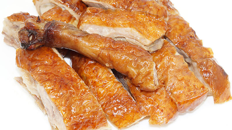 烧鹅外表金黄鲜亮,香气浓郁,皮香脆可口,肉汁中带有韧性,在舌尖上流淌。 【详细】