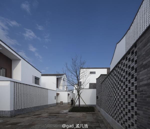 在满足了基本需求后,孟浩凡才开始考虑,如何为这座古镇保留传统江南民居的神韵,又体现出现代学的美感和创意。他想到了画家吴冠中。孟浩凡说,比起具象的元素,他更多考虑的是保留“气质”。“比如说你看这色调,色调是白墙绿瓦,中间有一些灰色系的这种砖,都是老色调的基底给我们的感觉。这种压顶的线条,像吴冠中的画,都是很抽象的嘛。画江南民居,他画出来很抽象的艺术画,没有具象的符号,但是你一看这个东西它就是江南的,因为屋顶的这种曲线、线条,勾勒出了江南的这种俊秀。”