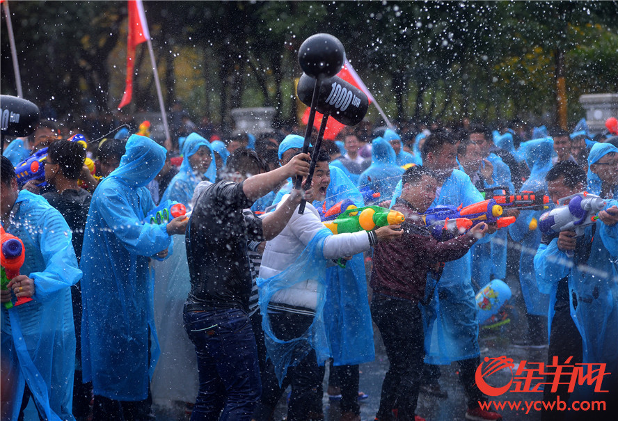 金羊网讯 记者汤铭明摄影报道:2017年2月27日,农历二月初二,“龙抬头”的日子,东莞东坑镇迎来了一个盛大而独特的地方节日——二月初二“卖身节”。每年这个时候,东坑的居民都会举行隆重的欢庆活动,当中“射水狂欢”就是重头戏!街坊们走上街头,尽情地互相泼水,祝福的水花飞溅,场面热闹壮观。