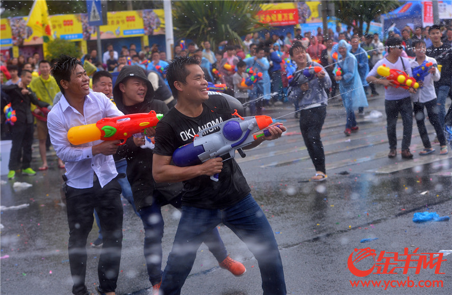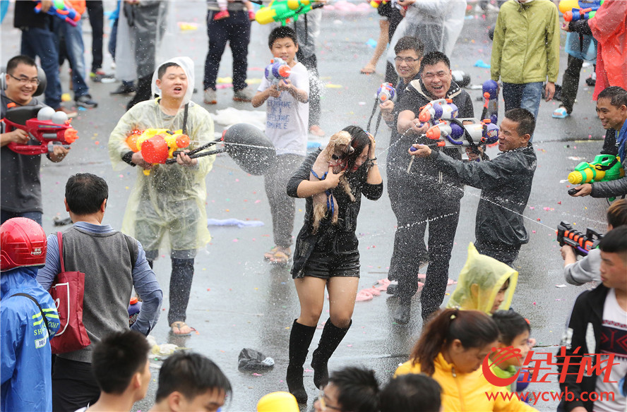 金羊网讯 记者汤铭明摄影报道:2017年2月27日,农历二月初二,“龙抬头”的日子,东莞东坑镇迎来了一个盛大而独特的地方节日——二月初二“卖身节”。每年这个时候,东坑的居民都会举行隆重的欢庆活动,当中“射水狂欢”就是重头戏!街坊们走上街头,尽情地互相泼水,祝福的水花飞溅,场面热闹壮观。