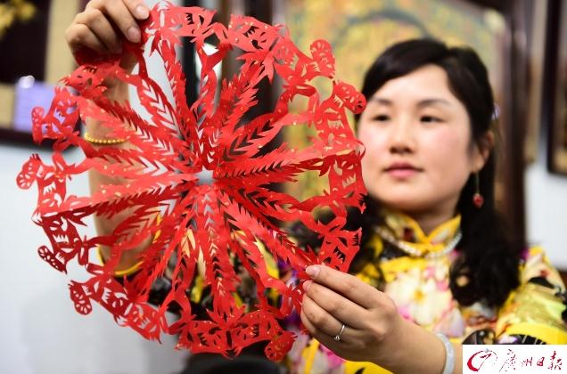 千件大师作品亮相广州 2017年3月1日,第52届全国工艺品交易会开幕式中国进出口商品交易会展馆举行。图为:佛山剪纸。广报全媒体记者王燕 摄 曾卫康文
