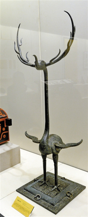 ▲曾侯乙幕出土战国时期铜鹿角立鹤。