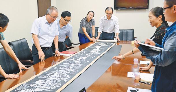 现场展示剪纸艺术作品《深圳上河图》(局部)。