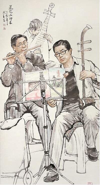 莲花山脚下,几位老年人聚在一起,拉二胡、吹笛等,秀出“十八般武艺”;书屋一角,一群孩子席地而坐,捧着心爱的读物专心致志地看起来……此次国画展以中国画的形式表达了画者对福田、对祖国的深情厚谊和对美好生活的向往热爱,也展现了广大老年人在福田区生活的良好精神文化生活状态。园岭街道老年协会的朱女士观展后说,画展给辖区长者搭建了充分发挥自己才艺的平台,展现出辖区老年人充实愉快的晚年生活;同时,令老年人减轻对子女的依赖,活出独立的生活品味。