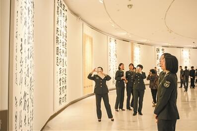 记者了解到,此次展览从全军遴选20位书法骨干,特邀36位著名军旅书法家,严格按照“定人员、定内容、定尺幅、定书体”的标准,潜心创作打磨,力求以形神兼备、文质兼美的优秀作品,给观众以强烈的艺术感染、深刻的思想启迪和丰厚的精神滋养。