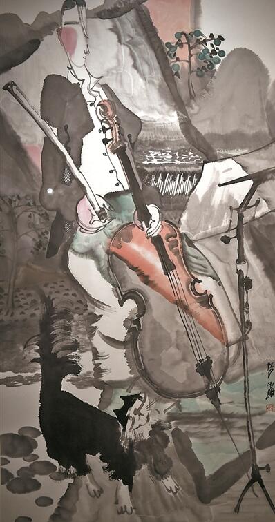 近些年看到梦露中国人物画,特别是这次参展的作品,让我感觉耳目一新。作品突出地强调人物造型的简约概括,以及对现代趣味的追求和平面化的表达,画面所表现的空间也不是简单的立体空间,而是通过强调书写性的线条和墨色的浓淡来表达画面的力度感和平面空间感,使作品呈现出现代的、独具个性的审美价值。她善于发挥传统中国笔、墨、纸等媒材的特殊性,使她的水墨人物画既能满足应物象形的要求,又显示出现代的抽象审美情趣;尤其是她善于通过水墨运用,包括墨色的浓淡、用水的多少、运笔运墨过程中线条的节奏与韵律,在画面中起到烘托节奏气氛和创造意境的重要作用,很好地表现了现代青年女性艺术家那种独特细腻、敏感和某种难以言状的情感意蕴,并使她笔下的人物具有了真正的生命活力。