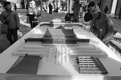 参加故宫“文化+科技”国际论坛的嘉宾在故宫数字所参观3D打印的微缩紫禁城。记者 李继辉摄