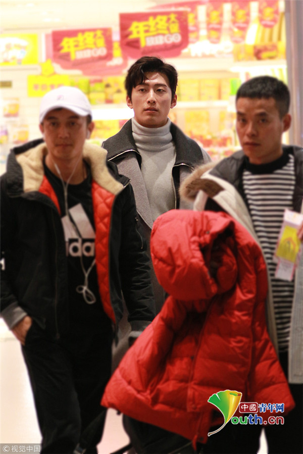 暖男无疑!窦骁灰大衣帅气现身 见镜头隔玻璃比V