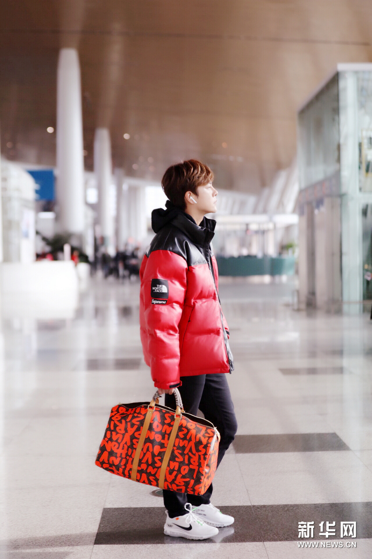 徐海乔机场秀大长腿 红色羽绒服个性时髦