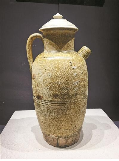 邢窑席纹黄釉大执壶。展品均为难得一见的文物珍品