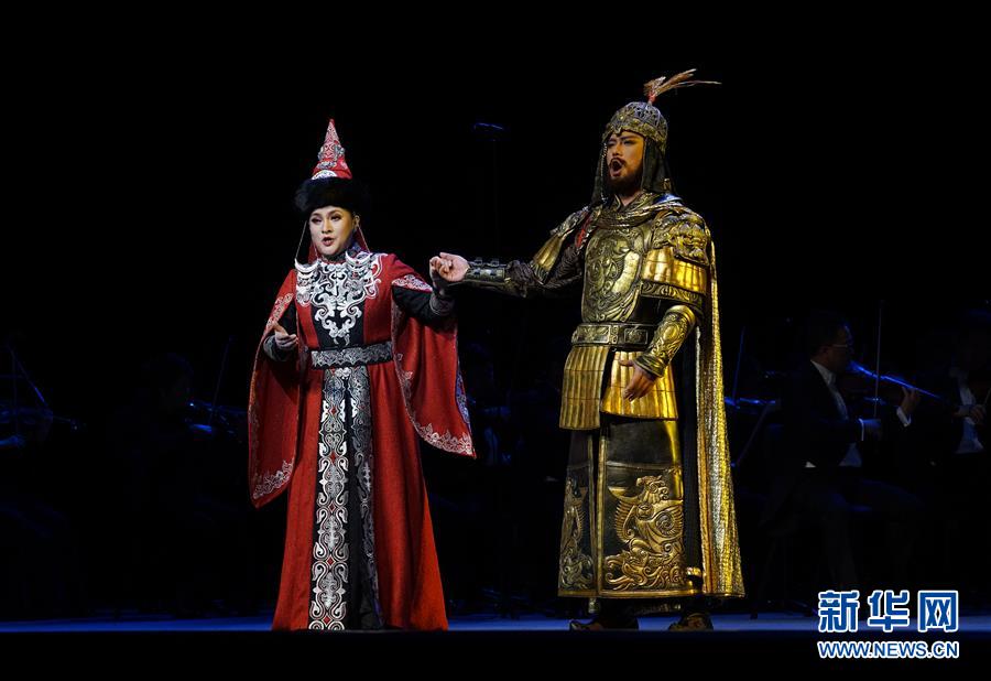 12月16日,中央歌剧院的演员在开幕演唱会上演唱歌剧《玛纳斯》选段《圣洁的月亮湖》。当日,第三届中国歌剧节在江苏省南京市江苏大剧院开幕。本届歌剧节作品丰富,共有来自全国各地的23台优秀剧目参演。新华社记者 孙参 摄