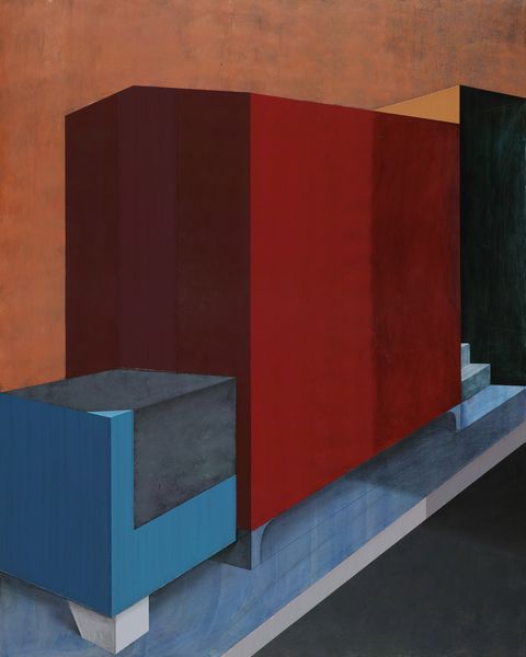 赵新宇作品当中的图式来源,无论是从摄影作品中或者装置作品中抑或现实当中选取某个场景的边角,从某种程度上,均服从于他个人基于谨慎的、甚至敏感的内在压制,正如《室外2#容器》背景的窗框,称其为窗框,倒不如把它当作画面整体结构的一个同级逻辑走向,正如同置放在背景前的所谓“容器”当中的几何体,是几何化了的现实物与根据画面再行部分添加的合奏,在某种程度上,也可以说是塞尚绘画理念的一则变异体。
