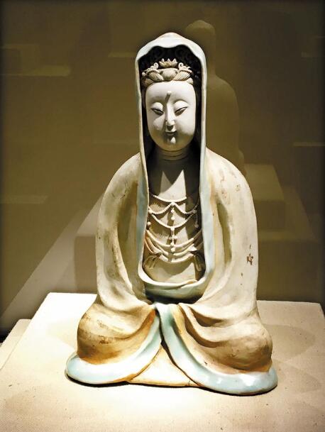 ▲南宋景德镇白釉瓷塑观音菩萨像。