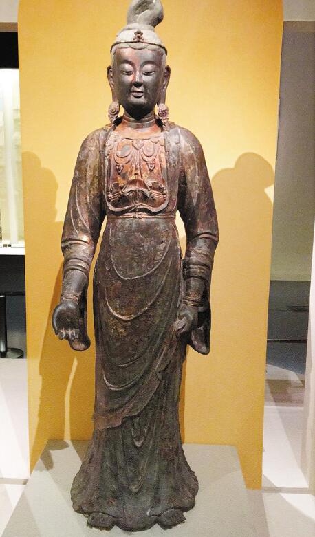 记者看到,如今正在举行的“观照自在——中国古代观音造像艺术展”展出中国汉藏两大佛教体系中观音及其化身、本尊、眷属等相关造像共计百余件,包括铜造像、绘画、瓷塑以及木雕等多种质地,均为首都博物馆所藏,艺术文化价值极高。由此亦可见首都博物馆所藏佛教文物非常丰富。