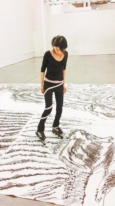 “把本民族最好的东西呈现出来,不代表一定要原封不动地照搬过去,水墨画作为一种传统文化,它本身也需要随着时代的发展而发展。”生于1988年的青年艺术家田海稣14日接受记者专访时表示,用轮滑绘制中国水墨画是她艺术探索的方式之一,今后她还会继续探索中国传统水墨的国际化表达方式。
