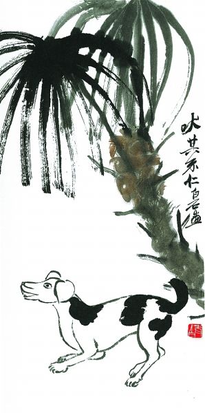 随着上世纪九十年代国内宠物热的兴起,狗越来越多地进入大众的日常生活,频频成为当代画家的表现对象。当代大家黄永玉先生的水墨画,具有讽刺与幽默的色彩,他画的狗系列画作,令人忍俊不禁。著名画家史国良的西藏风情画中,我们也经常能看到狗的身影,如他画的《八角街上》,画中静卧一角的黑狗使整个画面平添了许多生活气息。古今画狗的名家名作还有很多,实难一一列举。狗的忠诚、温顺是人类的最爱,正缘于狗与人类的这种特殊关系,狗才成为画家们百画不厌的题材。