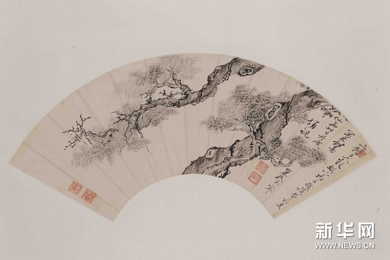 蔡含,明末清初女画家。字女萝,号圆玉,江苏吴县(今苏州)人。著名文人冒襄侧室。擅山水、花卉、禽鱼。蔡含常与冒襄另一妾金玥合作绘画,人称“冒氏两画史”。世人常知冒辟疆与董小宛,鲜知冒氏有一位工绘画,尤其擅画古松的侧室蔡含。闺阁女子,能放笔画松,且笔墨老辣劲健,实属女中才子。后来“虞山派”诗人邓林梓作《画松歌》赞她:“少君贞心比老松,千岩万壑在胸次。四方乞画无虚时,缭绫侧理满箧笥。每因能事苦迫促,君公墙东避不啻。”说明她的古松图在当时士大夫阶层十分抢手,这幅古松献寿即是证明。一株盘回老松,簇簇松叶攒针于枝,根根有力,层次分明,扇面虽小,却有大气象。加上冒襄对题,是不可多得的琴瑟唱和之作。为《中国古代书画图目》唯一著录的蔡含作品。