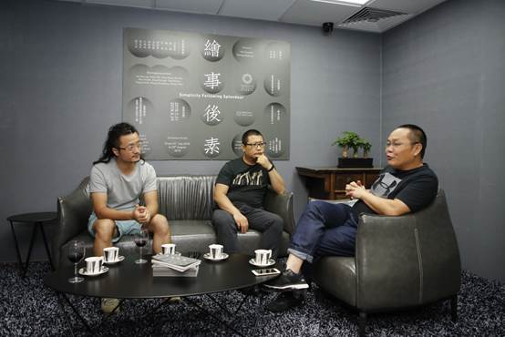 开幕式结束后,智美艺术特邀嘉宾—著名作家、艺术家,唐寅九先生与陈澈、姜培源两位艺术家围绕此次展览主题和当代青年艺术家的创作心态以及创作历程等诸多话题进行了深入的对谈。