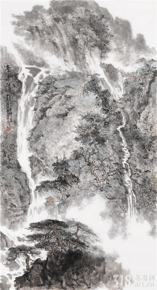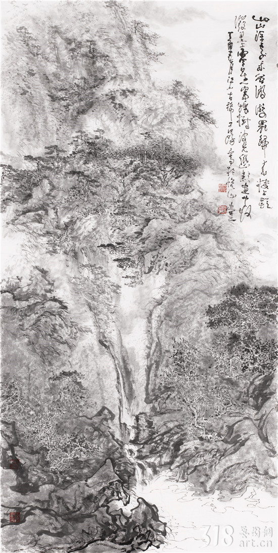 《松谷飞泉》 山水中堂 129×248cm 2018年