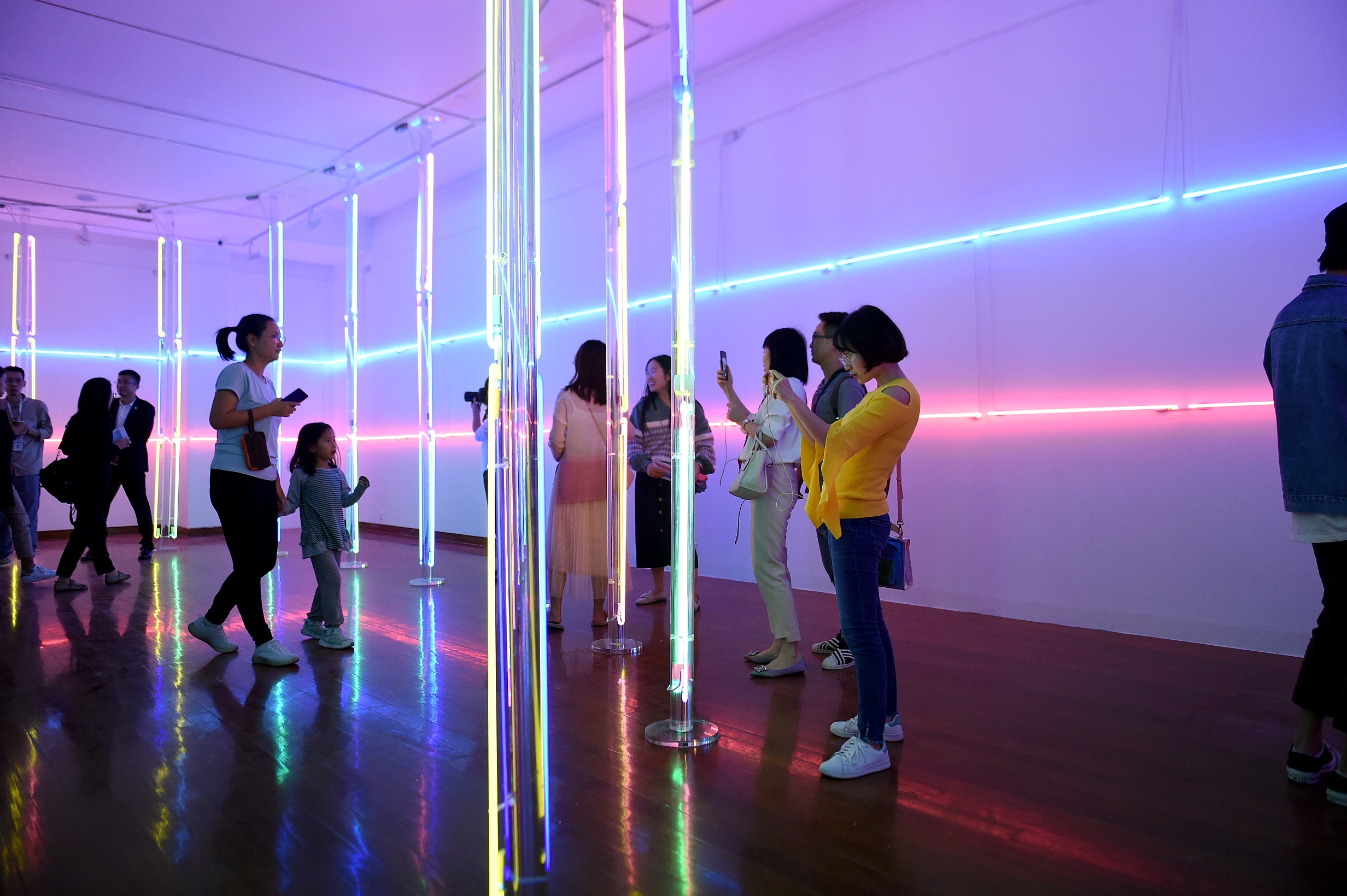 很多观众排队体验丹麦馆的《断电》,它由27根频闪观测器灯围着三张座椅。观众坐下,闭上眼睛……通过预设好的灯光顺序,闭上眼睛眼前将会呈现几乎会引起幻觉的灯光图案。同音乐一起,制造了一场浸入式的感官体验。通过调动眼球与大脑的敏感性,看它们如何产生视觉“断电”。