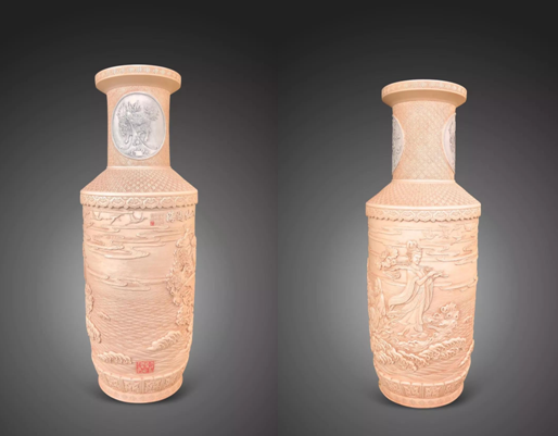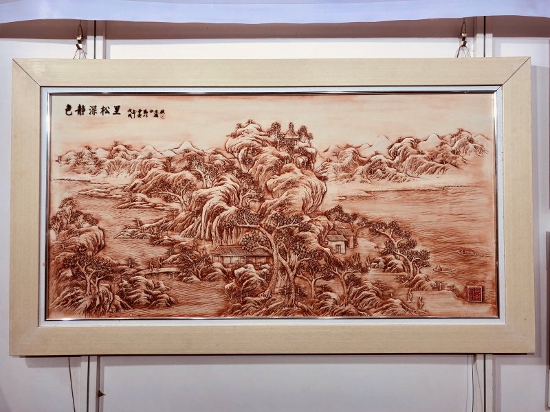 这是曹爱勤首次参加深圳文博会,带来了她所创作的陶瓷、篆刻、书画等多种形式的艺术作品,可以看到其不同形式作品的创作技法、主题、表现手法等均有较大差异,充分体现了曹爱勤在陶瓷艺术道路上追求卓越、勇于创新的新时代大国工匠精神。在其创作中,特别是作为中国陶瓷重要组成部分的陶瓷雕刻作品《色静深松里》、《八仙过海》,承载了国画、雕刻、装饰等综合性艺术手法,每件作品都充分体现出工匠技能,堪称学贯中西、熔铸古今之珍品。