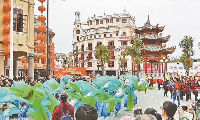 深圳特区报汕头2月17日电(记者 吴绪山 文/图)“春天交响”——2019年汕头市元宵群众欢乐汇文艺巡游2月17日上午在汕头市小公园历史文化街区启动,5公里巡游路程,近2千名演艺人员,10辆主题花车,各类表演精彩纷呈,展现了奋进发展、繁荣祥和的新时代汕头魅力。