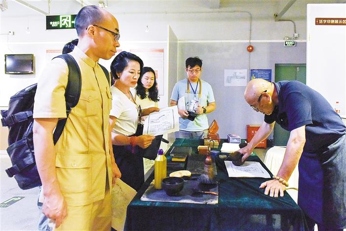 力嘉创意文化产业园分会场现场为来宾拓印文化创意图案。