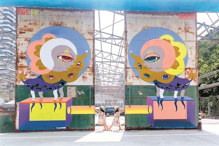 在城市公共空间中,涂鸦艺术不仅是一种重要的人文景观,同时还能给人一种视觉享受,使单一的生活变得富有色彩。来自中国香港的全职艺术家彭怡擅长用涂鸦进行故事创作,作品《双观》以左右对称相望的停车场守护神的形象感染车主与行人,传达平稳冷静的力量。同样来自中国香港的涂鸦艺术家曾昭昶,利用文字涂鸦作品的视觉误差,尝试突破停车格的物理范围,将平面转为立体,带来作品《内&外》。