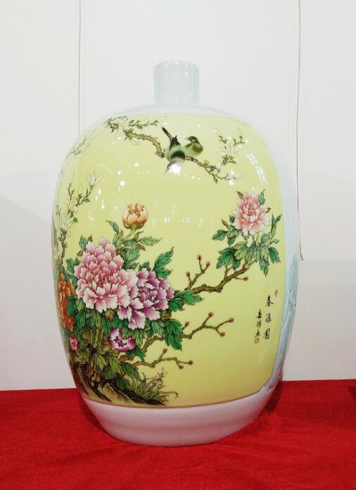 江西省陶瓷技能大师、江西省高级工艺美术师、恽派花鸟第十二代传人、景德镇青年陶瓷艺术家刘嘉鸿此次展会展出的陶瓷艺术作品共计35件,包含瓷板画、瓷瓶、瓷盘、青花瓷、青花斗彩瓷等,其中《春满园》、《锦堂富贵》、《长寿图》等作品呈现陶瓷技艺,展示出刘嘉鸿深厚的艺术造诣。