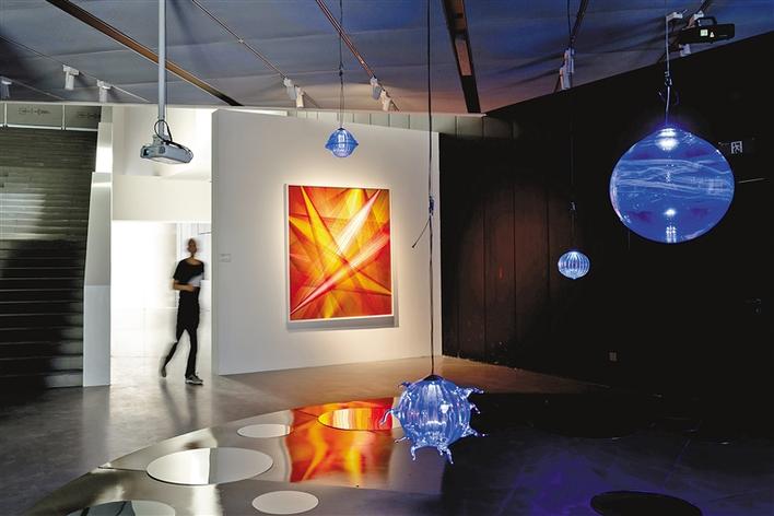 展览中最吸引人的是互动艺术装置,当代玻璃艺术家秦岭带来沉浸式视觉体验装置《光与云》,艺术家David Keohane的互动感应装置《时空爱》,女性艺术家王帅,在现场进行的空间绘画创作和沉浸式行为表演……这些丰富的表现形式让观众体验到视觉、听觉的双重演绎。
