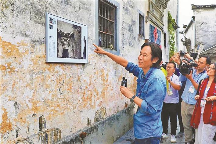 ▲2018年应天齐带领嘉宾在“应天齐西递村艺术馆”观摩画展。