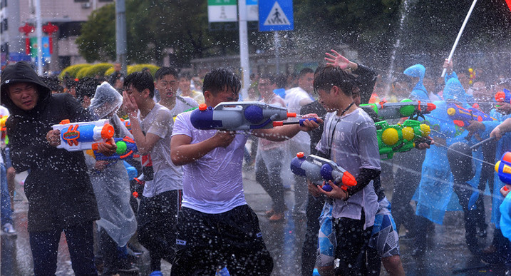 街坊们走上街头,尽情地互相泼水,祝福的水花飞溅,场面热闹壮观。
