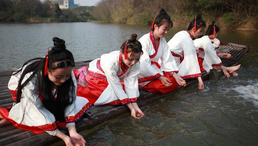 3月29日,一场重现中国古代春秋时期上巳节“曲水流觞、临水浮卵、水上浮枣”风俗的活动上演。