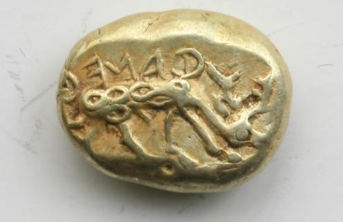 在古希腊钱币中,有一组早期琥珀金钱币极为特殊。