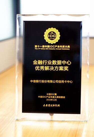 第十一届中国IDC产业年度大典于12月20日在北京国家会议中心隆重举行,中信银行信用卡中心通过大数据应用创新,凭借自主研发国内首个“决策引擎系统”,荣获“金融行业数据中心优秀解决方案奖”,成为本届大会唯一获此殊荣的金融机构。