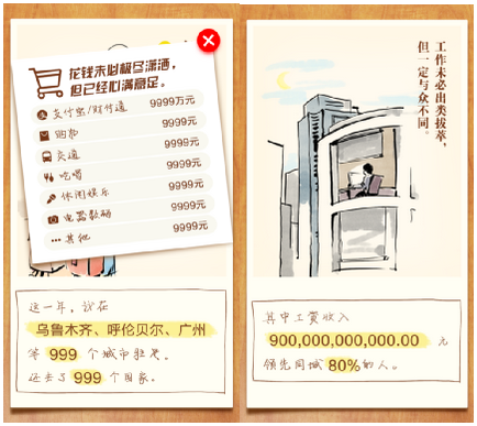 花钱归花钱,但也得看看口袋进了多少,毕竟消费并不能代表实力,收入排名才是衡量“土豪”的指标。在收支的横向比较上,第三方平台只能告诉我们钱花在哪里了,消费打败了多少人,而招商银行的年度账单不仅能呈现工资和理财收入怎么样,还能告诉我们收入在同城的排名。在微信朋友圈一直潜水的高中同学老陈,最近往朋友圈分享了个他的招行年度账单:工资收入领先同城80%的人。一时惊呆了众多同学,纷纷点评:苟富贵,勿相忘。