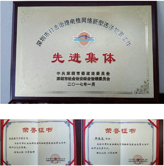 近日,深圳市2016年度打击治理电信网络新型违法犯罪工作总结表彰暨2017年度工作部署会召开。会议对2016年度打击治理电信网络诈骗工作专项行动进行了总结,并表彰了在打击工作中表现突出的先进集体和先进个人。渤海银行深圳分行被评为“深圳市打击治理电信网络新型违法犯罪先进集体”,郑镇波同志被评为“深圳市打击治理电信网络新型违法犯罪先进个人”。