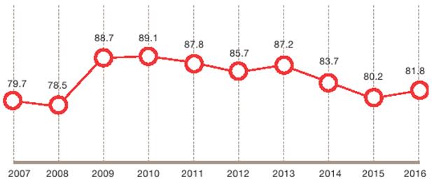 根据本次发布的指数数据显示,最近十年中,“中国汽车经销商金融发展指数”主指数分值变动区间为78.5-89.1,其中2016年为81.8,较2015年有一定回升,反映过去一年汽车经销商金融领域重拾增长势头。此外,据四个分项指数预计,2017年行业景气指数和流通渠道健康指数将保持总体平稳,信贷安全指数与融资活跃指数将有所提升。据悉,该系列指数今后将定期对外发布。