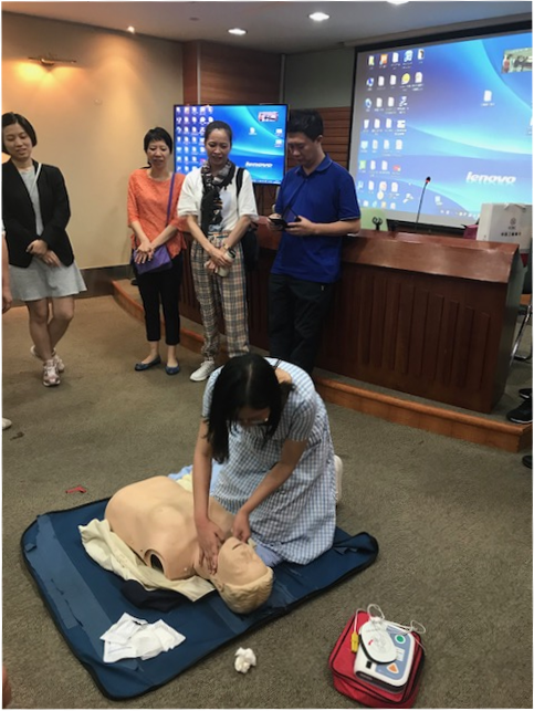 在急救知识培训中,授课老师对心肺复苏、意外伤害等常见突发事件的救护知识一一讲述,并进行现场演示,参训员工通过实践模拟,提升了突发场景下自救互救的意识与能力。