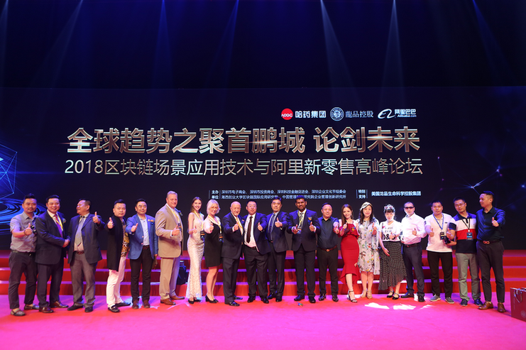 7月10日,由深圳市电子商会、深圳市投资商会、深圳科技金融促进会、深圳企业文化节组委会、海西创业大学区块链国际应用研究院和中国管理科学研究院企业管理创新研究所联合主办,美国龙品生命科学控股集团联合主办的“2018区块链场景应用技术与阿里新零售高峰论坛”在深圳市民中心大礼堂召开。