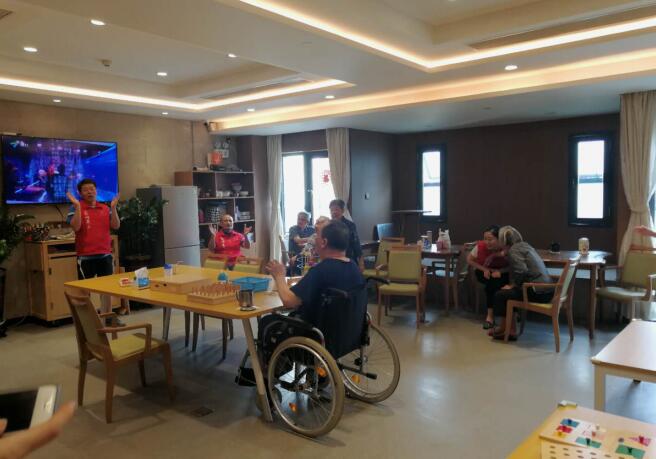 交行相关工作人员在前期与养护中心的护工沟通了解到,养护中心的老人们生活无忧,吃喝无愁,更需要的是陪伴与精神慰藉。在了解情况后,交行的义工们纷纷来到老人身边,陪老人们聊天,询问老人的生活状况,并为老人们现场表演歌舞节目,一首《东方红》大合唱更是让老人们开心地一起歌唱。