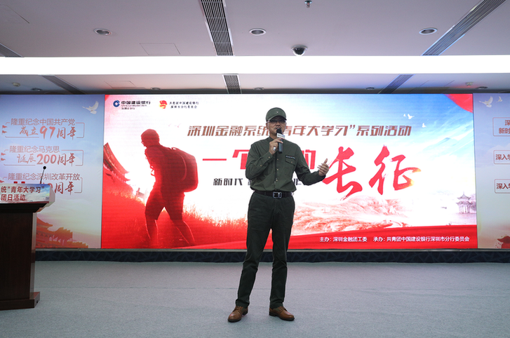 7月13日上午,由深圳金融团工委主办、建设银行深圳市分行团委承办的深圳金融系统“青年大学习”主题团日活动在建设银行会议室隆重召开。活动邀请著名摄影家、纪录片导演左力老师为大家分享“一个人的长征”主题讲座。深圳金融团工委刘鹏书记出席活动并致辞,50余家机构共150多名深圳金融青年参加了这次活动。