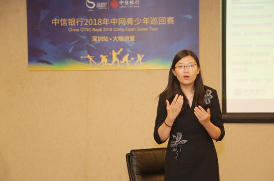 在竞赛板块之外,本届巡回赛组委会还组织了“大咖讲堂”和网球体适能训练营。“大咖讲堂”邀请了三位专家老师为参赛球员及家长讲解了如何通过网球特长实现海外名校留学、出国全流程中中信银行为客户提供的一站式服务体验、如何预防运动损伤及科学训练提升运动能力等话题。