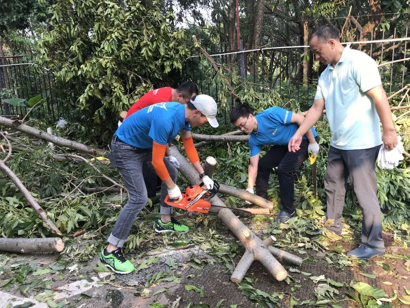 当天下午,分公司还开展了灾后爱心活动。刚刚过去的周末,深圳经历了超强台风“山竹”的强烈侵袭,大量树木折损、倒伏路面,影响市民交通出行。分公司当即组织党员干部“人人动手,清洁家园,美丽深圳”,分公司党委书记、总经理陈峰先生,纪委书记、副总经理梁晓燕女士带领大家走上福田区莲花一村街头,锯断折损树木、扛运木头、清理枝叶、运输垃圾,为清洁路面、畅通交通出一份力。台风无情,太保有爱,分公司以实际行动践行社会责任,彰显太保担当。