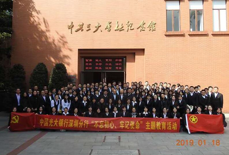 深圳新闻网1月23日讯(通讯员楼蓉 李昕)据了解,1月18日光大银行深圳分行组织赴广州瞻仰中共三大会址和黄埔军校,以党建带团建的方式,深入开展“不忘初心,牢记使命”主题教育活动。此次活动党员骨干代表和团支部书记共150人参加。