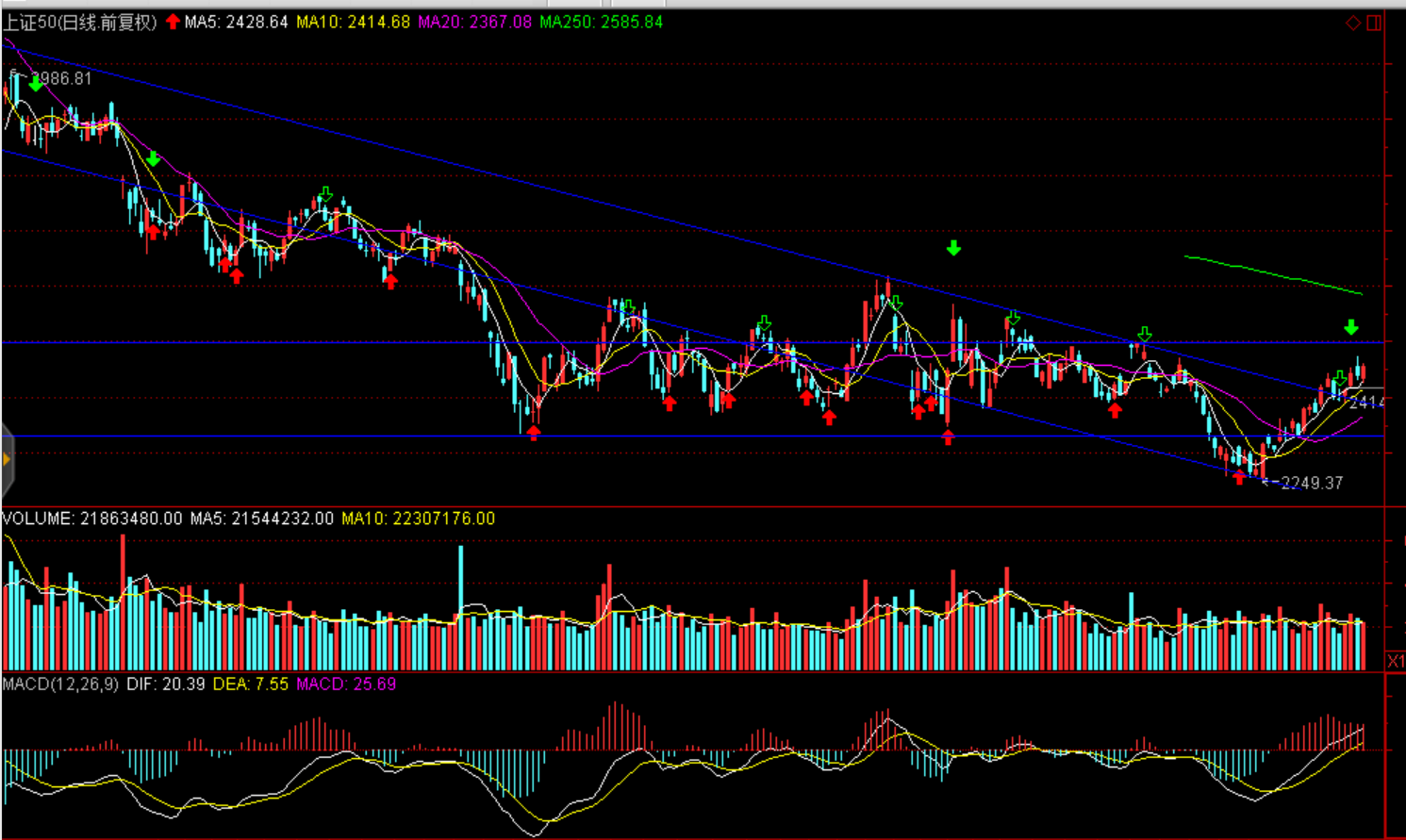 技术面:上证50上档2500点一线存在较大压力、沪综指2570---2600点、创业板1230--1270点区间运行。