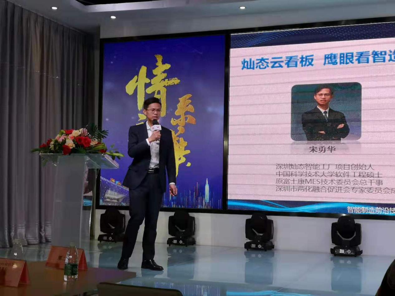 灿态信息总经理宋勇华是原富士康集团MES技术委员会总干事,他以18年富士康智能制造系统实践经验、100多个工厂信息化智能项目沉淀工作经历介绍了面向中小企业的智能制造落地方案。其解决方案依据他原创的三屏看智造理念,即“灿态鹰眼云看板” SaaS产品,打造符合企业发展实际需要和高性价比的智能化平台,助力中小企业智能化务实落地。