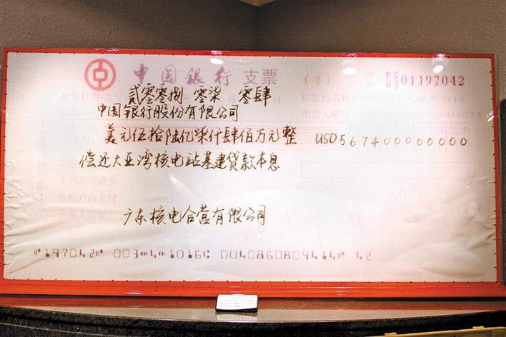 大亚湾核电站基建外汇贷款还款支票。