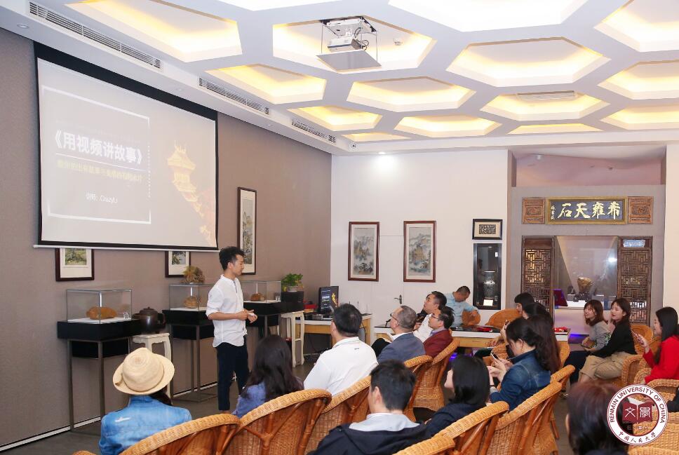 此次活动,拉开了求是文学社2019年蜕变的序章;是文学社在成立一周年之际,回馈给热爱生活热爱文学的校友们、一次与时俱进的学习机会。活动由中国人民大学商学院EMBA求是文学社秘书长楼蓉筹备及主持。会上,知名自媒体人、秋原影像创始人、视觉中国签约摄影师、图虫签约摄影师、《有灵则鸣》作者、华为全球发布样片摄影师CrazyLi,为文学社会员进行了一次干货满满的、微电影创作基础知识讲座,内容包括:拍摄设备的操作教学、脚本的讲解和制作指导、画面的拍摄技巧、后期剪辑教学等。