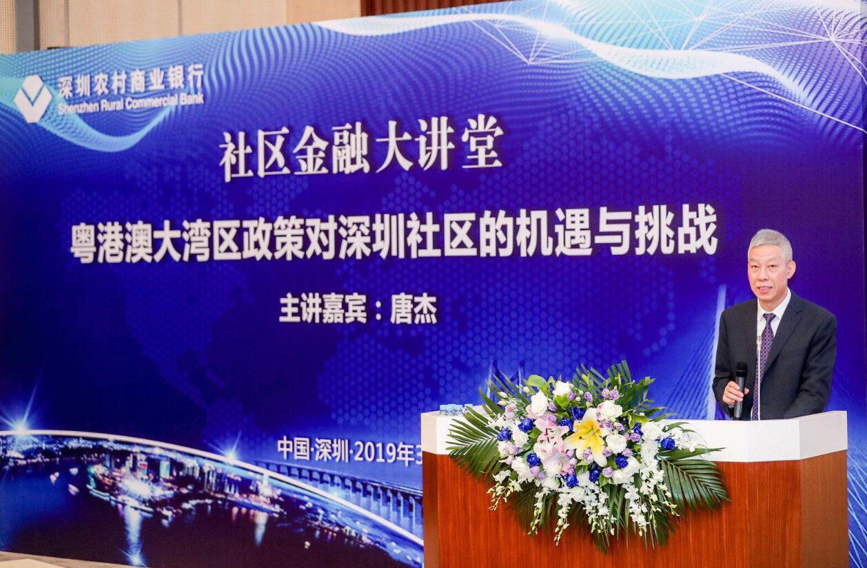 深圳新闻网3月22日讯 22日上午,由深圳农村商业银行主办的“社区金融大讲堂”在深圳市资本市场学院揭开帷幕。活动邀请了龙岗区、坪山区及大鹏新区的社区企业代表参加,深圳农商行董事长李光安出席并致辞,特邀嘉宾唐杰教授作主题演讲,共话粤港澳大湾区政策对深圳社区的机遇与挑战。